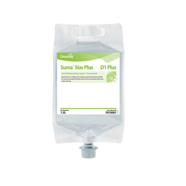 Suma Multi Conc D2 Star Plus D1 est une version optimisée du Suma Multi, offrant un nettoyage puissant des surfaces lavables en cuisine professionnelle. Il convient à tous les matériaux résistants à l’eau (inox, plastique, faïence).